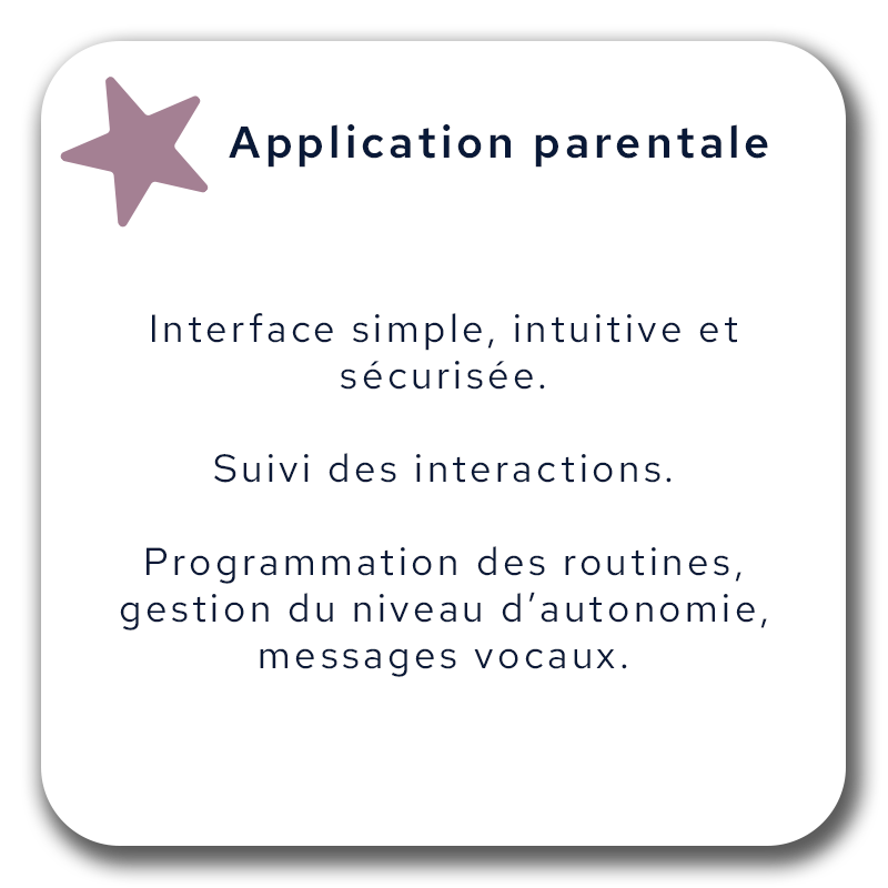 – Via l’application parent, vous pouvez ajuster les routines, gérer les permissions, et suivre les interactions en toute transparence.