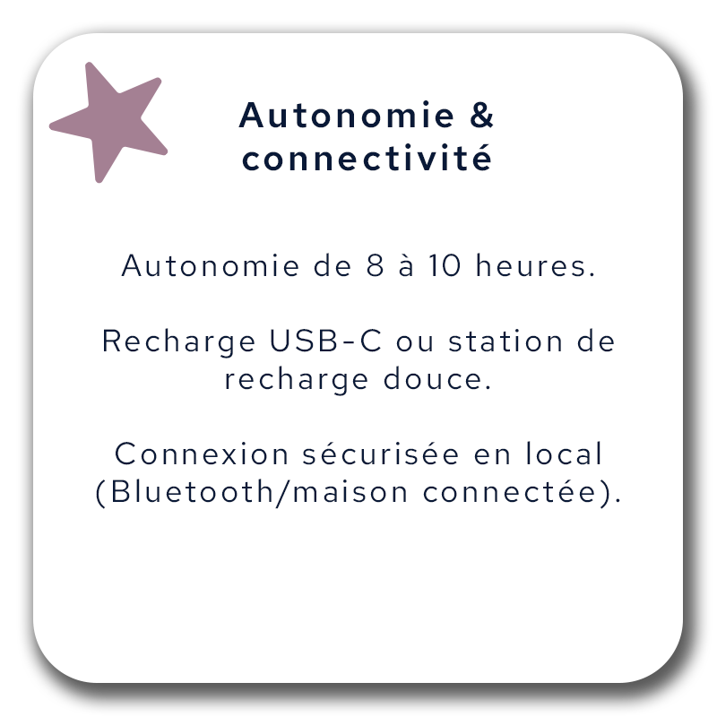 – Inspiré du monde de l’enfance, Euno s’intègre harmonieusement dans la chambre ou le salon — pas de look « high-tech », pas d’écran hypnotique.